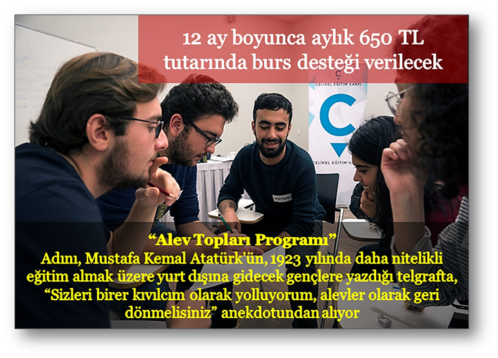 Adını, Mustafa Kemal Atatürk’ün, 1923 yılında daha nitelikli eğitim almak üzere yurt dışına gidecek gençlere yazdığı telgrafta, “Sizleri birer kıvılcım olarak yolluyorum, alevler olarak geri dönmelisiniz” anekdotundan alan “Alev Topları Programı”, 7. senesinde de kıvılcımlarına sağladığı desteği sürdürüyor. Kişisel farkındalığı yüksek, iletişim becerileri kuvvetli, sosyal sorunlara kalıcı çözümler üretebilen, etik bakış açısına sahip bireylerin yetişmesine olanak sağlamak amacıyla Çelikel eğitim vakfı tarafından hayata geçirilen program, diğer burs programlarından farklı olarak bursiyerleri bir gelişim ekosistemi sağlıyor, onlarla sürekli iletişim ve etkileşimi önemsiyor.Alev Topları Programı kapsamında, kıvılcımlara 2018-19 eğitim öğretim yılı için, 12 ay boyunca aylık 650 TL tutarında burs desteği verilecek. Bununla beraber, program kapsamında, her kıvılcım grubuna özel tasarlanan duygusal ve sosyal gelişim odaklı atölye ve seminerler, sanat faaliyetlerine katılım, kitap hediyeleri, dergi ve Müze Kart Plus abonelikleri, gibi destekler ile kıvılcımların kültürel ve sosyal gelişimine katkı. sağlanıyor. Bunların yanı sıra, yeni kıvılcımların “Akran Danışmanlık Sistemi” ile deneyimli kıvılcımlardan alacakları danışmanlık desteği ise, üniversitenin ilk yıllarındaki uyum süreçlerini kolaylaştırıyor.; Ayrıca, program içeriğinde yer alan sosyal sorumluluk projelerine aktif katılım ile, kıvılcımların ilgi alanlarını etki alanlarına dönüştürerek değer üretmeleri ve sosyal becerilerini deneyimleyerek geliştirebilmeleri de hedefleniyor. “Profesyonel Gelişim Desteği” ile mezuniyet öncesi staj olanakları ve profesyonel çalışma hayatları için kariyer danışmanlığı desteği de alan kıvılcımlar her yönden daha donanımlı bireyler olmaya hazırlanıyor.Kıvılcımlardan Yıldız Teknik Üniversitesi Makine Mühendisliği Lisans Programı mezunu Samet Türhan Alev Topları Programı’nı güçlü kılan özellikleri şu sözlerle anlattı: “Türkiye’de aynı amaçla kurulmuş birçok kuruluş var. Bu programın bence en güçlü yanı herhangi bir sorunumu, mantıklı ve makul sebeplerle karşımdaki yetkili kişilere anlattığımda bu sorunu birlikte çözebileceğimizden emin olmam. Emin olun ki bu programın en güçlü yanı kıvılcımlarına verdiği güvendir.’’Başvuru için temel koşulun, “2018 ÖSYS kontenjanları kapsamında İstanbul’daki devlet üniversitelerinin lisans programlarına ya da vakıf üniversitelerinin tam burslu lisans programlarına yeni kayıt hakkı kazanmış olmak” olan programın adayları, programa dahil olma kriterlerini taşımaları ve ön değerlendirme kontenjanı kapsamına girerek gerekli belgeleri ilan edilen süreler içerisinde teslim etmeleri durumunda değerlendirmeye alınacak. Ön değerlendirmede uygun bulunan adaylar, önce grup mülakatına, uygun görülmeleri halinde ise ikinci aşama olan bireysel mülakata davet edilecek.Kıvılcımlardan İstanbul Kültür Üniversitesi Hukuk Fakültesi (Tam Burslu) Lisans öğrencisi olan Şevval Güzel, başvuru, değerlendirme ve kabul süreçlerini şu şekilde anlattı: “Program’ın başvuru süreci, diğer kurumların burs başvuru süreçleri ile karşılaştırıldığında insanı içsel sorguya yönlendiren; sadece programa başvurma aşamasında bile insana farkındalık kazandıran bir süreç. Bizden bir mektup yazmamız istenmişti, bu farklı ve dikkat çeken bir yöntem. Değerlendirme sürecinde ise en çok dikkatimi çeken şey sürecin çok gerçekçi işlemesi. Belirli prosedürler var ve hepsi gerçekçi süreçler. Bu sürecin gerçekten çok iyi düşünüldüğünü, öğrencinin yanında olmak için hazırlanan bir süreç olduğunu görmek beni çok etkiledi. Öncelikle grup mülakatlarına girdim ve çok güzel insanlarla tanıştım. Bazıları ile hala arkadaşlığım sürüyor ki bu çok güzel bir his. Bireysel mülakatlarımız ise öğretici ve yol göstericiydi. Özetle sadece başvuru, değerlendirme ve kabul süreci içerisinde bulunmak bile başlı başına güzel bir tecrübeydi.”Kıvılcımlardan İstanbul Üniversitesi Cerrahpaşa Tıp Fakültesi 2. sınıf öğrencisi Menderes Özdemir ise şunları söyledi: “Bu süreç benim için kesinlikle eşsiz bir deneyim. Program, sunduğu maddi destekle İstanbul şartlarına daha kolay uyum sağlamamızı sağlıyor. Bizlerin gelişimi için düzenlediği faaliyetler ve Program’a devam koşullarından biri olan gönüllülük & sosyal sorumluluk projeleri sayesinde kendimi her yönden gelişmiş hissetmekle birlikte, daha donanımlı bir birey olma fırsatı yakaladım. Ayrıca, program kapsamında sunulan kitap, müze kart, tiyatro bileti gibi hediyeler kendimi kültürel olarak geliştirmemde de yardımcı oldu.”