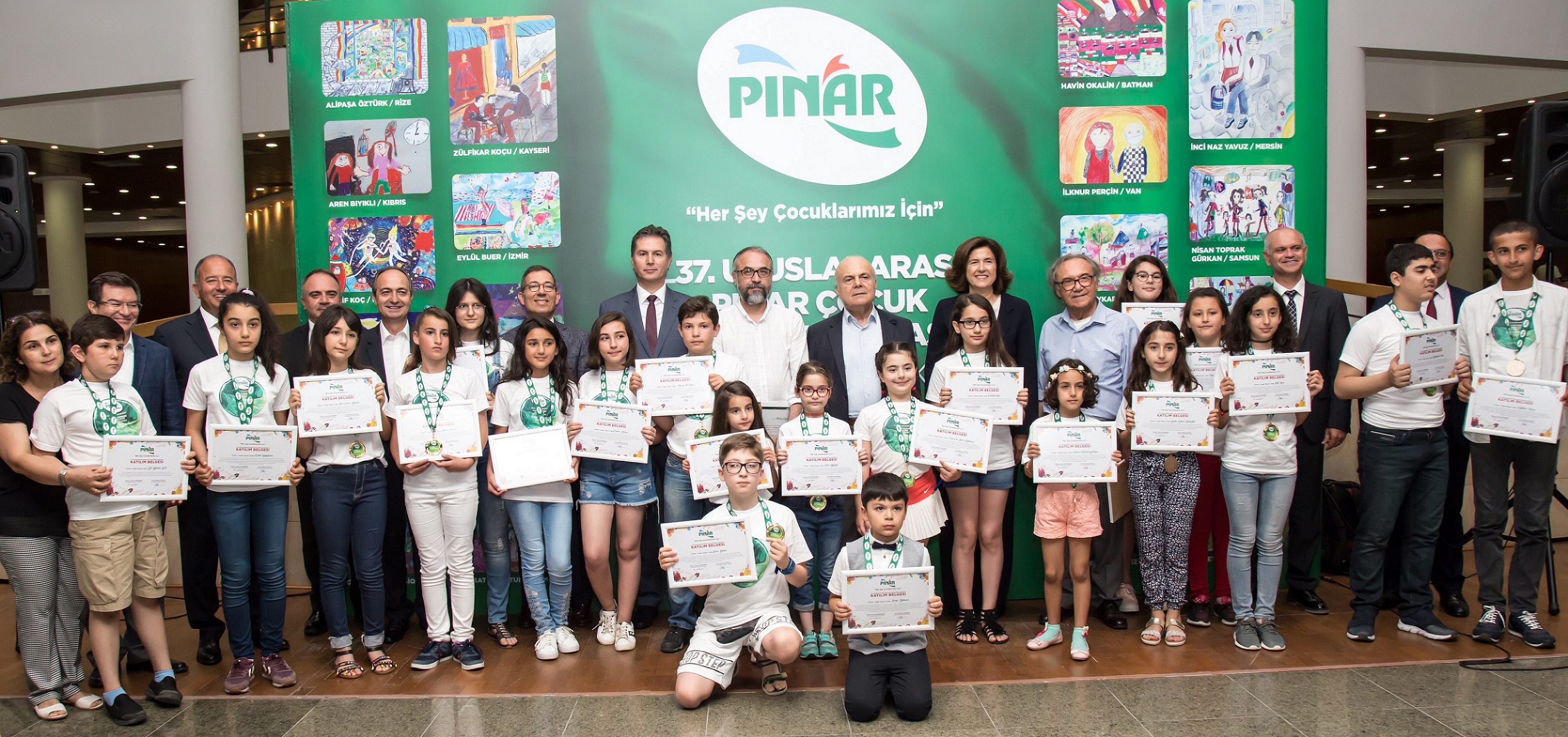 Sertifikalarını alan minik ressamlar tablet ve resim malzemeleriyle ödüllendirilirdi. 3 öğrenci eğitim bursu almaya hak kazandı. Minik ressamların eserleri 11-24 Haziran tarihleri arası Ahmed Adnan Saygun Sanat Merkezi’nde ziyaret edilebilecek.Pınar Süt Yönetim Kurulu Başkanı İdil Yiğitbaşı’nın ev sahipliğinde gerçekleşen törene Yaşar Holding İcra Başkanı Mehmet Aktaş, Yaşar Üniversitesi Mütevelli Heyeti Başkanı Ahmet Yiğitbaşı, Yaşar Holding Gıda İcra Başkan Yardımcısı Levent Dağhan, Pınar Et Genel Müdürü Tunç Tuncer, pınar süt Ar-Ge Koordinatörü Erhan Savcıgil, Pınar Su Genel Müdürü Hüseyin Karamehmetoğlu, Yaşar Birleşik Pazarlama Genel Müdürü Suat Özyiğit,Yaşar Holding yöneticileri, jüri üyeleri ve İzmirli sanat severler katıldı.Törende konuşma yapan jüri üyeleri Prof. Dr. Mümtaz Sağlam ve Ressam Umur Türker çocukların yeteneklerinin her zaman desteklenmesi gerektiğinin altını çizerken Ressam Yalçın Gökçebağ, Picasso’nun “Rafael gibi resim çizmem dört senemi çocuk gibi çizmem ise ömrümü aldı” sözünü de hatırlatarak çocukların hayal gücünün sınırsızlığının değerini anlattı.Çocuklar resim sayesinde duygu, düşünce ve beklentilerini özgürce ifade edebiliyor...Ödül töreninde konuşan Pınar Süt Yönetim Kurulu Başkanı İdil Yiğitbaşı, şunları söyledi:“Onursal Başkanımız Selçuk Yaşar’ın, çocuklarımız sağlıkla büyüsün diyerek Pınar Süt’ü kurmasından bugüne tam 45 yıl geçti. İlk günden bu yana sağlık, lezzet, yenilik Pınarı olma misyonu ile çalıştık, çalışmaya devam ediyoruz. Çocukların gelişimlerine her konuda katkı sağlamak amacıyla, çocuklarımızı kapsayan çok sayıda sanat, eğitim ve spor alanındaki projeyi destekledik. Pınar Resim Yarışması’nı da 37 yıldır aralıksız gerçekleştiriyoruz. Araştırmalar resimle görsel eğitimin çocukların zeka, özgüven ve sezgi yeteneğini geliştirdiğini ortaya koyuyor. Çocuklar resim sayesinde düşünce, duygu ve beklentilerini özgürce ifade edebiliyorlar. Diğer yandan çocuklarımızın dijital dünyada ellerini kullanma yeteneklerini kaybetmemeleri de çok önemli. Bu yüzden Resim Yarışmamızın daha da gelişerek daha fazla çocuğa katkı sağlaması hedefiyle çalışmalarımızı sürdürüyoruz.”Çocuklar tarafından gönderilen her resmin geniş bir hayal gücünün ürünü olduğunu dile getiren İdil Yiğitbaşı, tüm öğrencilere hayallerini paylaştıkları için teşekkür etti.Kazananlar İzmir’de ağırlandıYarışmanın kazananı 19 minik ressam aileleriyle beraber 18-20 Haziran tarihleri arasında İzmir Balçova Termal Otel’de ağırlandı. Türkiye’nin 7 Bölgesi’nden ve Kuzey Kıbrıs Türk Cumhuriyeti’nden gelen çocuklardan çoğu ilk kez İzmir’i ziyaret etme fırsatı yakaladı. Gerçekleşen Pınar Kültür Sanat Etkinliği kapsamında çocuklar, Pınar Süt Fabrikası, Doğal Yaşam Parkı ve Hayvanat Bahçesi, Selçuk Yaşar Sanat Galerisi ve Ümran Baradan Oyun ve Oyuncak Müzesi’ni gezerek 2 gün boyunca keyifli anlar yaşadı.Kazanan ÖğrencilerGüneydoğu Anadolu Bölgesi