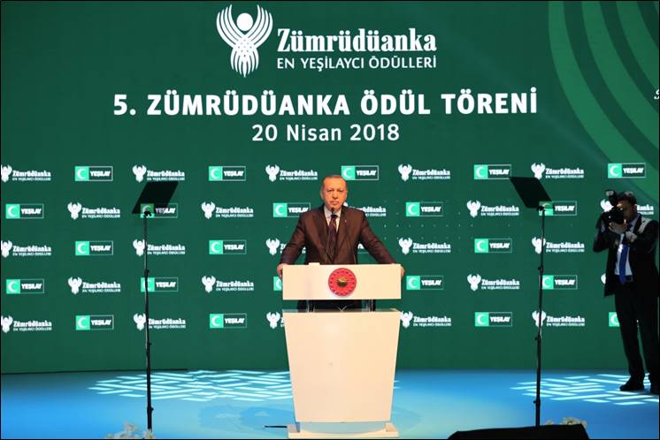 Siyaset, Sanat, Spor, Akademi, Sosyal Sorumluluk ve Medya olmak üzere 6 kategoride verilen ödüllere bu sene; İstanbul Büyükşehir Belediye Başkanı Mevlüt Uysal, sanatçı Ceza, basketbolcu Bobby Dixon Ali Muhammed, akademisyen Prof. Marc Potenza, Sosyal Sorumluluk’ta Turkcell ve Medya’da NTV kurumları layık görüldü.İnsan onurunu ve saygınlığını temel alarak, toplumu ayrım gözetmeden zararlı alışkanlıklardan korumak için 1920 yılından bu yana başarıyla faaliyet gösteren Yeşilay, bağımlılıklardan uzak, sağlıklı bir yaşamı misyon edinen, söz ve eylemleriyle bu mücadeleye destek veren kişi, kurum ve kuruluşları Zümrüdüanka Ödülü ile ödüllendirmeye devam ediyor. Bu yıl beşincisi düzenlenen ödül töreni, Cumhurbaşkanlığı himayesinde ve cumhurbaşkanı Sayın Recep Tayyip Erdoğan’ın katılımıyla 20 Nisan 2018’de Cemal Reşit Rey Konser Salonu'nda gerçekleşti.Zümrüdüanka Ödül Töreni’ne Cumhurbaşkanı Recep Tayyip Erdoğan ve Emine Erdoğan’ın yanı sıra, Enerji ve Tabii Kaynaklar Bakanı Berat Albayrak, Gençlik ve Spor Bakanı Osman Aşkın Bak, Aile ve Sosyal Politikalar Bakanı Dr. Fatma Betül Sayan, İstanbul Valisi Vasip Şahin, İstanbul Büyükşehir Belediye Başkanı Mevlüt Uysal ve çok sayıda davetli katıldı.Zümrüdüanka Ödül Töreni’nde kültür sanat dünyasından spora, akademiden siyasete, medyadan sosyal sorumluluk projeleri alanına kadar toplam 6 kategoride kişi ve kuruma “En Yeşilaycı” unvanıyla ödülleri takdim edildi.Cumhurbaşkanı Erdoğan: “Terör örgütlerinin en büyük gelir kapısı uyuşturucu ticaretidir”Cumhurbaşkanı Recep Tayyip Erdoğan, Cemal Reşit Rey’de düzenlenen Zümrüdüanka Ödül Töreni’nde yaptığı konuşmada, ödül töreni dolayısıyla yeşilay gönüllüleriyle bir arada olmaktan ve hasret gidermekten memnuniyet duyduğunu dile getirdi.Yeşilay Başkanı ve yönetim kuruluna teşekkür eden Erdoğan, 1920 yılından bu yana sağlıklı nesiller yetiştirmek için emek veren, mücadele yürüten tüm Yeşilay mensuplarına şükranlarını sundu.Yeşilay'ın başarılarıyla sadece Türkiye'de isminden söz ettirmekle kalmadığını, bilgi birikimi ve tecrübesiyle dünyanın 41 ülkesindeki muadil kuruluşlara da öncülük yaptığını kaydeden Cumhurbaşkanı Erdoğan, "Türkiye'nin bağımlılık ve zararlı alışkanlıklarla mücadele alanındaki bir asırlık kurumsal hafızasını dost ve kardeşlerimizle de paylaşıyor. Yeşilay'ın yurtiçinde olduğu gibi, yurtdışında da hizmetleri, birbirinden kıymetli projeleri, birbirinden değerli faaliyetleri bulunuyor. Sizlere uluslararası iş birliklerinizde de özellikle başarılar diliyor, dünyanın dört bir tarafında ülkemizi iftiharla temsil edeceğinize inanıyorum. 5. Zümrüdüanka Ödülleri’nin de Türkiye, millet ve bağımlılıkla mücadele eden vatandaşlar için hayırlara vesile olmasını diliyorum. Titiz bir çalışma sonucunda ödüle layık görülen sanatçılarımıza, medya mensuplarımıza, akademisyen, sporcu ve siyasetçilerimize tebriklerimi, takdirlerimi iletiyorum. Yeşilay'ın Zümrüdüanka Ödülleri, takdim edilenler için şüphesiz çok önemli, çok kıymetli bir payedir. Bu paye aynı zamanda sorumluluk ve mesuliyet demektir. Bu ödül, son nefesine kadar sürecek bir gönül görevine adeta nefer yazmaktır. Ben buradaki her bir kardeşimin bu payeyi iş ve özel hayatında onurla, gururla ama aynı zamanda bir vazife şuuruyla taşıyacağına inanıyorum."İnsan faktörünü dikkate almayan, insana gerekli özeni göstermeyen her teşebbüs ve her politikanın sonuçsuz kalmaya mahkûm olduğunu vurgulayan Cumhurbaşkanı Erdoğan, şöyle konuştu: "İnsanı dışlayan veya insanı sadece maddi yönden değerlendiren bir anlayışın başarı şansı da yoktur. Bir ülkenin asıl zenginliği, yeraltı ve yerüstü kaynakları değildir. Güçlü ülke, sanayisi, ekonomisi, ticareti, ordusu güçlü devlet manasına gelmez. Elbette bunların tamamı gereklidir, önemlidir. Her biri kendi başına bir değerdir. Ancak bize göre bir milletin en büyük hazinesi, en büyük güç kaynağı, ruhen, zihnen ve bedenen sağlıklı nesillere sahip olmasıdır. Evlatlarımız ne kadar zinde, ne derece sağlıklı olursa ülkemizin geleceği o kadar parlak, o kadar aydınlık olur. Gençlerini alkol, uyuşturucu, sigara, kumar, terör gibi dehlizlerde kaybeden ülkelerin istikbali karanlıktır."Evladını uyuşturucuya kaptırmış bir anne veya babanın durumunun düşünülmesini isteyen Erdoğan, "Adeta evladını Kandil'e kaçıranlar karşısında Diyarbakır Belediyesi’nin önünde günlerce hüngür hüngür ağlayan annelerin akıbetini düşünün. O neyse o da aynısıdır. Ne ekonomileri ne sanayileri ne paraları bu ülkeleri hızla yaklaştıkları karanlık akıbetten kurtarmaya yetmez." ifadelerini kullandı.Türkiye gibi iddia sahibi ülkelerin başına musallat edilen PKK gibi terör örgütlerinin en büyük gelir kapısının halen uyuşturucu ticareti olduğuna vurgu yapan Erdoğan, ‘uyuşturucuyu satarak toplumlar uyuşturuluyor, diğer taraftan elde edilen gelirlerle de silah mafyası güçlendiriliyor’ şeklinde konuştu.Bağımlılıkla mücadele bir vatan görevidirBir arkadaş veya bir aile ferdi bulamayan gençlerimizin, genellikle uyuşturucuya ve teknolojiye bağımlı hale geldiğini belirten Erdoğan, “Yalnızlaşan gençler çareyi sanal ortamlardaki sahte karakterlerde arıyor. Hemen yanı başında derdini paylaşacak anne, baba, kardeş, arkadaş bulamayan çocuklar internet zorbalarının tuzağına düşebiliyor. Manevi olarak yeterli eğitimi almamış, ruhundaki açlığı giderememiş evlatlarımız maalesef FETO gibi, DEAŞ ve PKK gibi ihanet çetelerinin ağına takılabiliyor. Bizim bunların hiçbirine rıza gösterebilmemiz, göz yumabilmemiz, sessiz ve tepkisiz kalabilmemiz m