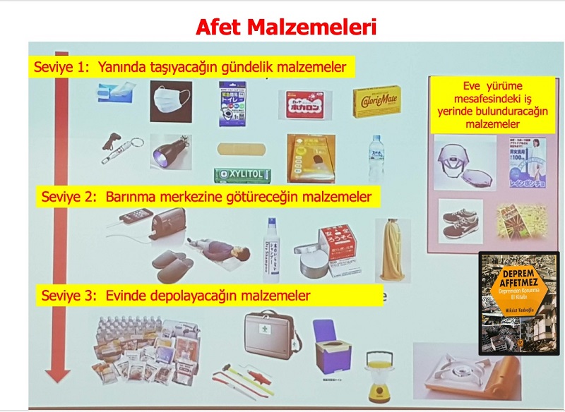 Prof. Dr. Mikdat Kadıoğlu'nun 'Deprem Çantası' konulu bilgi paylaşımı şöyle: 'Deprem Çantası - Bavulu filan hazırlayıp deprem başlayınca, onu sırtlayıp kaçmaya filan çalışmayın ha... Japonlar gibi BINANIZ YIKILMAYACAK ve şu şekilde afet malzemesi hazılayacaksınız'