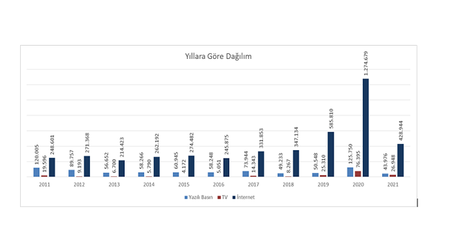 Medya Takip Merkezi (MTM) tarafından 10 bini aşkın yayın üzerinden yapılan taramalara göre; son 11 yılda deprem konusu; basın, TV ve internet mecraları toplamında 5 milyon 474 bin 450 haberde yer bulurken en büyük sıçramanın 2020 yılında yaşandığı görülüyor.