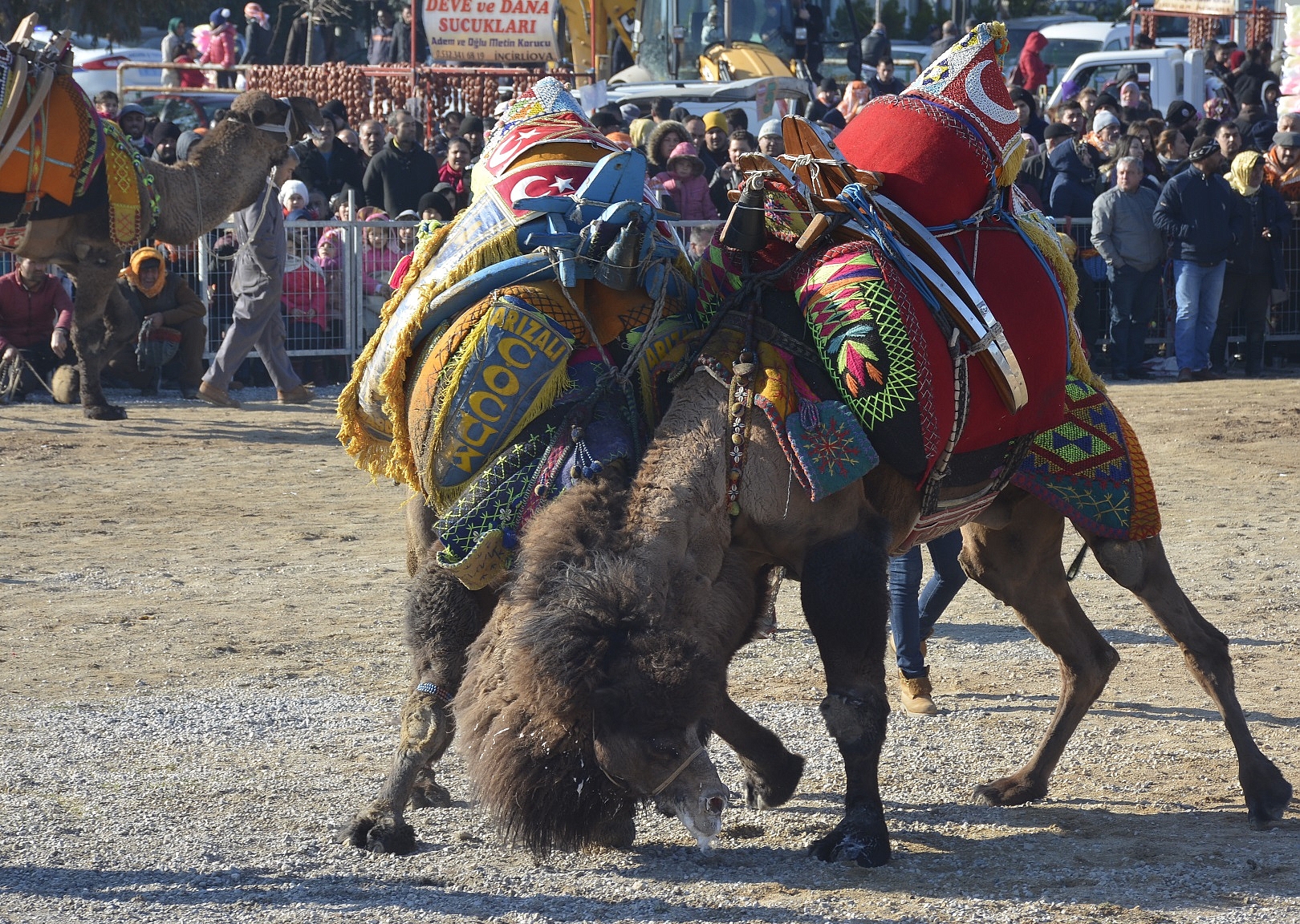 Ege, Akdeniz ve Marmara bölgelerinden 107 namlı pehlivan devenin areneya çıktığı güreşleri güzel havayı fırsat bilen binlerce vatandaş ilgiyle izledi.Dikili Belediyesi tarafından Dikili Deveciler Derneği işbirliğinde Çandarlı'da düzenlenen geleneksel deve güreşlerine 107 namlı pehlivan deve katıldı. Heyecanın doruklara ulaştığı ve renkli görüntülerin yaşandığı güreşler öncesinde Dikili Belediye Başkanı CHP'li Mustafa Tosun, güreş arenasını dolaşarak güreşleri izlemeye gelen vatandaşları selamlayıp, sevgi buluşması gerçekleştirdi.Vatandaşlardan Yoğun İlgiDikili'de geleneksel hale getirilen deve güreşleri Türk turizminin gözde yerlerinden biri olan Çandarlı'da gerçekleştirildi. Belediye ekiplerince Çandarlı Mahallesi'ndeki 80. Yıl Cumhuriyet Sahası Orhan Hassoy Spor Tesisleri'nde oluşturulan özel arenadaki müsabakalara Ege, Akdeniz ve Marmara bölgelerinin çeşitli ilçelerinden gelen 107 namlı pehlivan deve çıktı. Sabahın erken saatlerinden itibaren vatandaşların yoğun ilgi gösterdiği etkinlikleri 3 bine yakın güreşsever izledi. 55 müsabakanın düzenlendiği ve güreş meydanından kaçan develerle, başlayıp da bitmesi bir olan müsabakaların heyecan kattığı güreşler esnasında havanın da güzel olmasını fırsat bilen 7'den 70'e binlerce deve güreşi sevdalısı mangalını, etini, içeceğini kaparak güreş alanında özel olarak hazırlanan römork ve kamyon kasalarında yerini aldı. Etkinlikler öncesi Dikili Belediyesi Halkoyunu Ekibi ile Atatürk İlkokulu öğrencilerinin sunduğu zeybek gösterisi dakikalarca alkış aldı.
