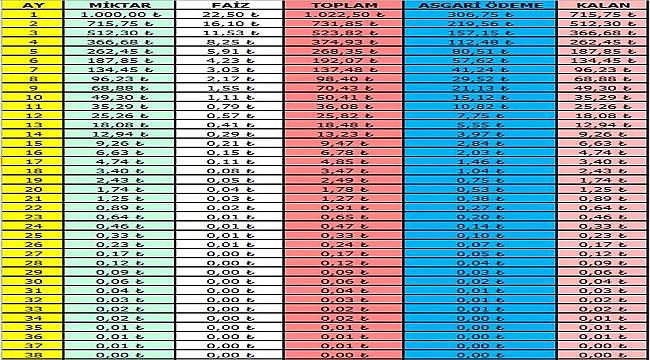 Asgari Ödeme TuzağıANALİZ - TÜKETİCİ POSTASICebimizdeki kredi kartı, sıkışık zamanlarımızda imdada yetişiyor. Cebimizde para olmadığında, zorunlu gereksinimlerimizi karşılamak için kredi kartından harcama yapıyoruz.Ancak harcama yaparken, nakit para harcamamanın cazibesine kapılıp zorunlu gereksinimlerimizin, ihtiyaçlarımızın ötesine geçip lüks olan harcamalarımızı da yaptığımız bir gerçek. Bunu yaparken, bir sonraki ay gelecek ekstredeki tutarı ödeme kabiliyetimizin olup olmadığını çoğu kez düşünmüyor, gerekirse “en kötü ihtimal asgariyi öderim nasılsa” diyerek kartı kullanmaya devam ediyoruz. Ekstre geldiğinde de, asgariyi ödeyip kalan borcu öteliyoruz.Ama doğru mu yapıyoruz. Hayır. Asgari ödeme tuzağına bir kere girildi mi, artık kurtulmak mümkün değil.İşte güncel faiz oranı ve yüzde 30’luk asgari ödeme ile tuzağa düşen tüketicinin hali:(HABERİN SONUNDAKİ FOTO ÜSTÜNE TIKLAYINIZ)Tablo her şeyi ortaya koyuyor.Kredi kartınızdan sadece 1.000,00 TL. harcama yapıp başka hiçbir harcama yapılmadığını varsayarak, harcanan 1.000,00 TL., asgari tutarı ödenerek ancak 38 ayda bitiyor.Harcama tutarının 1.000,00 TL. yı geçtiği ve bir yandan 1.000,00 TL. yı öderken, diğer yandan kredi kartını kullanmaya devam ettiğimizi de düşündüğümüzde, asgari ödemenin tüketiciyi yıllarca esareti altına alacak, çıkmaza sürükleyecek bir tuzak olduğu açıkça görülüyor.
