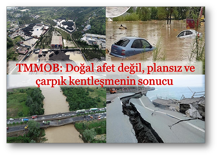 TMMOB Yönetim Kurulu Başkanı Emin Koramaz basın açıklamasında şunları kaydetti: Doğu Karadeniz’de etkili olan mevsim yağışları nedeniyle her gün farklı bir ilimizde sel ve taşkınlar yaşanıyor. Geçtiğimiz günlerde Rize ve Ordu’ya yaşanan sel, taşkın ve heyelan nedeniyle zarar gören tüm halkımıza geçmiş olsun dileklerimizi iletiyoruz.8 Ağustos 2018 tarihinde Ordu ve ilçelerinde yaşanan yağışlar deneniyle bölgede bulunan dereler taşmış, dere yatağında bulunan ev, iş yeri ve sanayi bölgeleri sular altında kalmış, dereler üzerinde kurulan köprüler kullanılamaz hale gelmiş ve Karadeniz Sahil Yolu üzerinde bulunan Cevizdere Köprüsü yıkılmıştır.Doğal afet değil, plansız ve çarpık kentleşmenin sonucu Doğu Karadeniz bölgemizde yılın aynı dönemlerinde yaşanan yağışlarda hep aynı manzaralarla karşılaşıyoruz: Dereler taşıyor, dere yataklarındaki evler sular altında kalıyor ve Karadeniz Sahil Yolu’nun bir bölümü yıkılıyor. Bu durum, yaşadıklarımızın doğal afet değil, plansız ve çarpık kentleşmenin sonucu olduğunu gösteriyor.HES’ler nedeniyle derelerin akış rejimi bozuluyorYıllardır bölgede yaşanan sel olaylarıyla ilgili yaptığımız inceleme ve değerlendirmelerde, üç ortak noktanın öne çıktığını gözlemliyoruz: İlki dere yataklarındaki yapılaşma, ikincisi Karadeniz Sahil Yolu’nun oluşturduğu setin derelerin Karadeniz’e ulaşmasına engel olması, üçüncüsü de HES’ler nedeniyle derelerin akış rejiminin bozulmasıdır. Bu üç temel sorun çözüme kavuşturulmadan, bölge halkının can ve mal güvenliğinin sağlanması mümkün değildir.Yanlışlardan geri dönülmeliHükümet ise bu sorunları çözmek yerine, sorunları kalıcı hale getirerek bölgenin yüz yüze olduğu tehdidin daha da büyümesine neden olmaktadır. İmar barışı adı altında dere yataklarına yapılmış yerleşimlere ruhsat verilmekte, derelerin üstleri kapatılarak-dere yatağı betonlaştırılarak suyun doğal yollarla denize ulaşması engellenmekte, bölgede yoğunlaşan HES ve Madencilik faaliyetleri nedeniyle doğal bitki örtüsü yok edilmekte, Karadeniz Sahil Yolu ve dolgu alanlarla bölge adeta sellere karşı savunmasız hale getirilmektedir.Doğu Karadeniz Bölgemiz daha büyük felaketler yaşamadan bu yanlışlardan geri dönülmesi gerekmektedir. tmmob ve bağlı odalarımızın bölgeye ilişkin uyarıları dikkate alınmalıdır. Doğayla ve insanla barışık, planlı kentleşme, ulaşım ve enerji politikaları hayata geçirilmelidir.Yaşanan felaketten zarar gören bölge halkına bir kez daha geçmiş olsun dileklerimizi iletiyor, yetkilileri sesimize kulak vermeye çağırıyoruz.