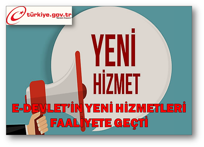 E- Devlet Kapısı, e-Devlet Şifresi, Mobil İmza, Elektronik İmza, T.C. Kimlik Kartı ve Banka bilgilerinizle başvurabileceğiniz yeni hizmetlerini faaliyete geçirdi.