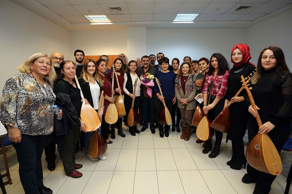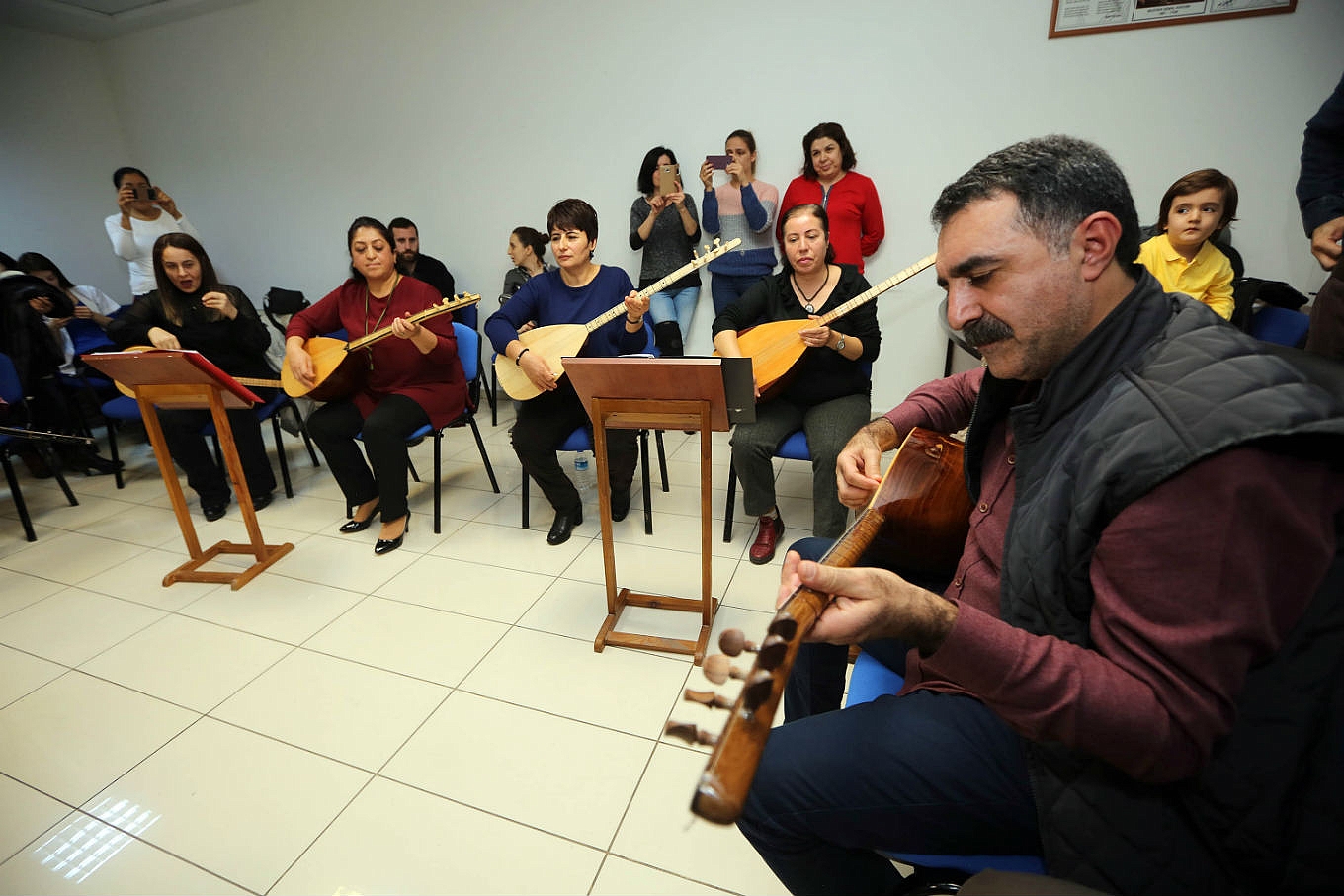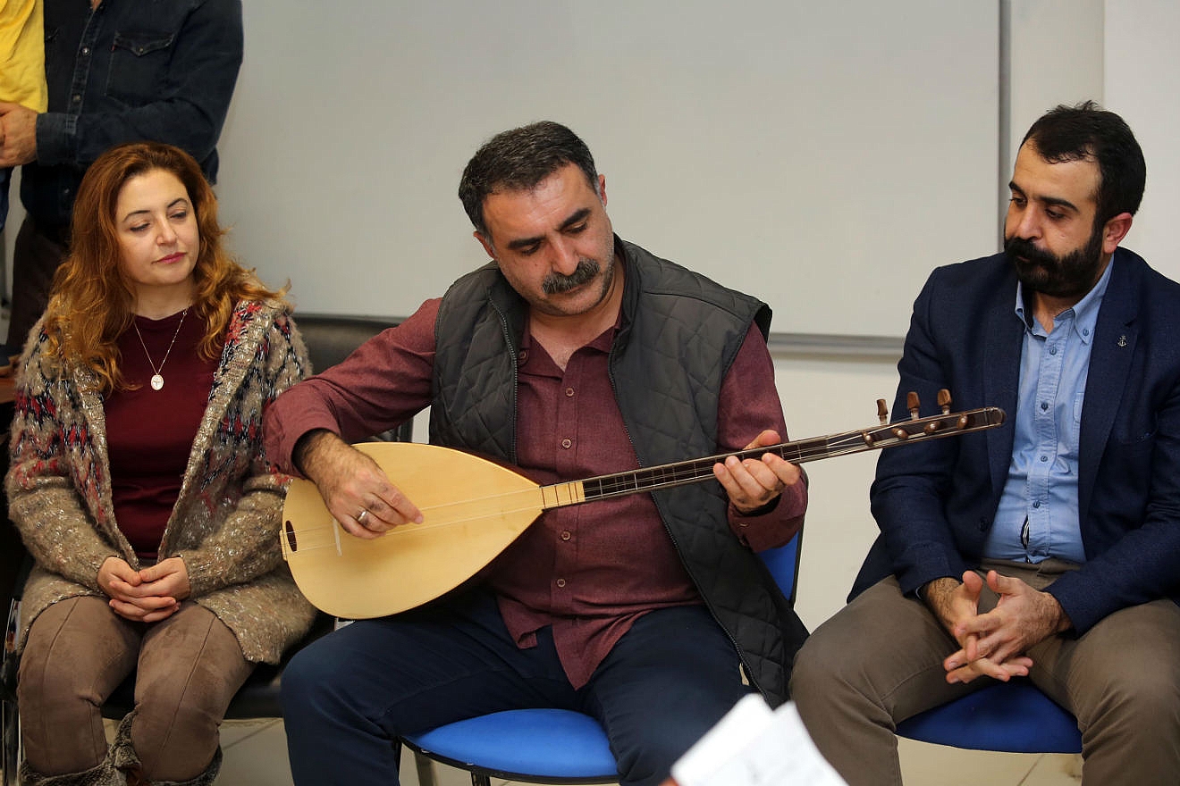 Bağlamanın usta ismi Erdal Erzincan, Yenimahalle Belediyesi Meslek Edindirme ve Hobi Kursları’nda (YENİMEK) bağlama eğitimi alan kursiyerlerle “Bağlama Söyleşi”sinde buluştu.Batıkent Meydan AVM YENİMEK Kursu’nda gerçekleşen söyleşiye, Erdal Erzincan’ın eşi ve aynı zamanda meslektaşı Mercan Erzincan’da katıldı. “Bağlama ile nefes alıyorum”Kursiyerlere bağlamanın kendisi için ne kadar önemli olduğunu dile getiren Erzincan, “Ben bağlamaya çok fazla anlam yüklüyorum. Onunla nefes alıyorum. Yani bir gün bağlama çalamayacak olursam herhalde nefes alamam. Zaman içerisinde bağlamaya hayat veren ozanların söylediği sözler benim için bir rehber oldu. Bir süre sonra sazın size çizdiği yoldan gidiyorsunuz. Bağlamayı iyi çalan, söyleyen, onun felsefesini iyi taşıyan insanların söylediği her şeyi kulağıma küpe ettim. Yaşantıma uygulamaya çalıştım” dedi. ““Yenimahalle Belediyesi’ni tebrik ediyorum”Yenimahalle Belediyesi’nin bu tarz kurslarla kültüre ve sanata çok büyük bir hizmet verdiğini de dile getiren Erzincan, “Bugün burada bağlama dersi alıyor olmanız kültüre ve sanata çok büyük bir hizmet. Yenimahalle Belediyesi’ni tebrik ediyorum. Aslında sizler bu eğitimi alarak boş zamanınızı doldurmuyorsunuz, bilerek veya bilmeyerek bu yola hizmet ediyorsunuz, bağlamayı yaşatıyorsunuz. Sazı taşıyan kişinin hizmeti yüzeyseldir o da bir şeyler anlatır ama saz çaldıkça daha da derinleşir. Çaldıkça Yunus’a kadar ineriz. Pir Sultan Abdal’ı, Karacaoğlan’ı hatırlatırız. Bunu yaptığınıza sazı en üst seviyede çalıyorsunuz demektir” diye konuştu.Kursiyerlerden mini konserKonuşmasının ardından kursiyerler Erzincan ailesine mini bir konser verdi. Kursiyerleri başarılı performanslarından dolayı tebrik eden Erzincan, kursiyerlerin jestine karşılık vererek hem bağlama çaldı hem de söyledi.Alkışlar eşliğinde söyleşiye son veren usta sanatçıya Yenimahalle Belediyesi yetkilileri tarafından çiçek takdim edildi.