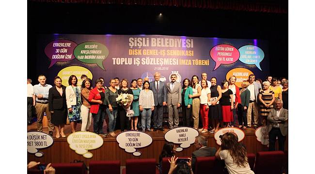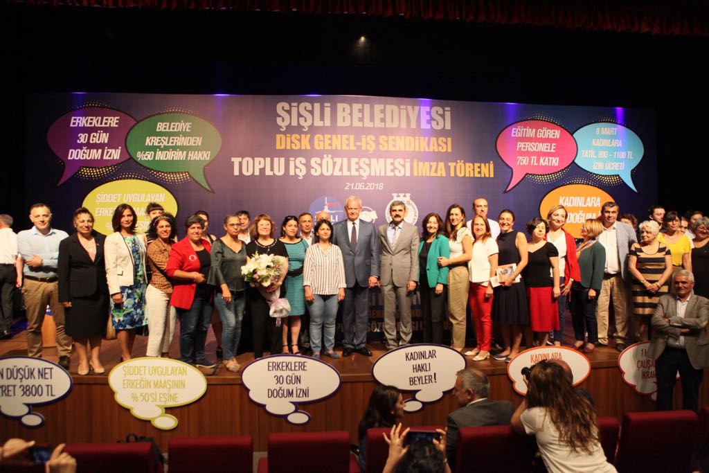 Şişli Belediyesi ile DİSK/GENEL-İŞ Sendikası arasında imzalanan 2018-2020 dönemi toplu iş sözleşmesi kadın çalışanlara sağladığı sosyal haklarla öne çıktı. Toplu iş sözleşmesinde bir ilke imza atıldı; eşi doğum yapan erkeklere 30 gün izin hakkı tanındı.