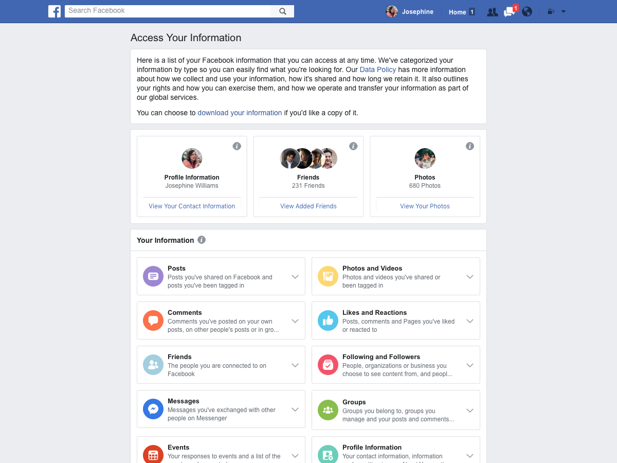 Facebook verilerinizi bulmak, indirmek ve silmek için araçlar: Yeni “Bilgilerinize Erişin” aracı ile artık paylaşımlarınıza, bıraktığınız ifadelere, yaptığınız arama ve yorumlara güvenli bir biçimde erişebilecek ve onları yönetebileceksiniz. Haber kaynağınızdaki ya da profilinizdeki bir paylaşımı ya da bilgiyi silmek için de bu aracı kullanılabileceksiniz. Buna ek olarak facebook ile paylaştığınız verileri (yüklediğiniz fotoğraflar, hesabınıza eklediğiniz kişiler, zaman tünelinizdeki gönderiler vb. gibi) indirmek ve hatta başka bir servise taşımak da çok daha kolay hale gelecek.