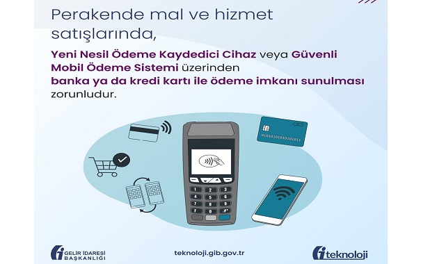 GİB... ''Perakende mal ve hizmet satışı yapan işletmelerin, Yeni Nesil ÖKC veya Güvenli Mobil Ödeme Sistemi kullanmaları ve bu sistemler üzerinden banka ya da kredi kartı ile ödeme imkanı sunmaları zorunludur.''