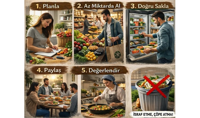 TÜKETİCİ FAYDALI BİLGİ Yayınlanma: 01 Mart 2026 - 18:40 Gıda İSRAFI böyle önlenir - FOTO Haber! TÜKETİCİ FAYDALI BİLGİ 01 Mart 2026 - 18:40 1 dk okunma süresi Yazdır A Büyüt A Küçült Tüketiciler, GIDA israfı çok önemli bir konu ve devam ediyor. Sıfır Atık Türkiye, GIDA israfını önlemek için 5 adımlık yol har,tası hazırladı. İşte o harita... GIDA İSRAFINI ÖNLEMEK İÇİN 5 ADIM!tp # GIDA İSRAFI ANASAYFAYA DÖNMEK İÇİN TIKLAYINIZ İlginizi Çekebilir TÜKETİCİLER ÖNEMLİ 'Şoklardan kurtulmak için 10 öneri' TÜKETİCİLER 'Güzellik Merkezlerinde kullanılan ELEKTRİKLİ cihazlara dikkat' Hiçbir kolluk görevlisi ''Para, altın ya da banka bilgisi talep etmez' TÜKETİCİLER 'Depremlerde NASIL haberleşmeliyiz?' TÜKETİCİLER 'Bekleme modu FATURAYI şişiriyor?' TÜKETİCİLER 'Bekleme modu FATURAYI şişiriyor?'