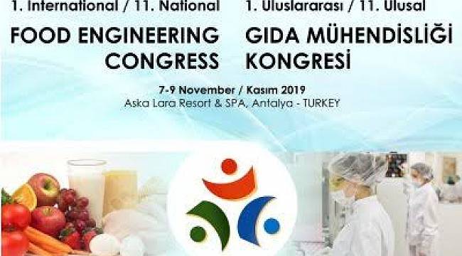 1. Uluslararası 11. Ulusal Gıda Mühendisliği Kongresi 7- 9 Kasım 2019 tarihinde Antalya’da gerçekleştirilecek.