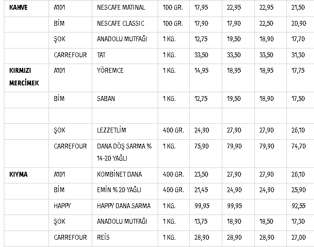 *KDV indiriminin etiketlere yansımadığı ürünler kırmızı, KDV indirimin yansıtıldığı ürünler mavi ile işaretlenmiştir.Toplam 100 kalem temel gıda ürünü üzerinde yapılan tespitte, 78 kalem üründe KDV indiriminin etiketlere yansıdığı, kalan 22 üründe henüz yansımadığı ortaya çıkmıştır.Elde edilen sonuçlar sevindiricidir. Ekonomide zor koşulların egemen olduğu bir dönemde KDV indirimini çok hızlı bir şekilde etiketlere yansıtarak, bu mücadeleye destek veren perakende satış noktalarını kutluyoruz. Temel gıda ürünlerindeki KDV indiriminin açlık ve yoksullukla mücadele veren tüketiciler için bir nebze de olsa nefes alma olanağı sağlayacağı kuşkusuzdur. Bu mücadeleye vergi indirimini yansıtmanın yanında, kar oranından bir miktar fedakârlıkla ayrıca katkı yapılması, aynı gemide olma anlayışının güçlü bir göstergesi olacaktır.Aygül ÖnerTüketici Birliği FederasyonuMarket Endeksi Çalışma Grubu Başkanı