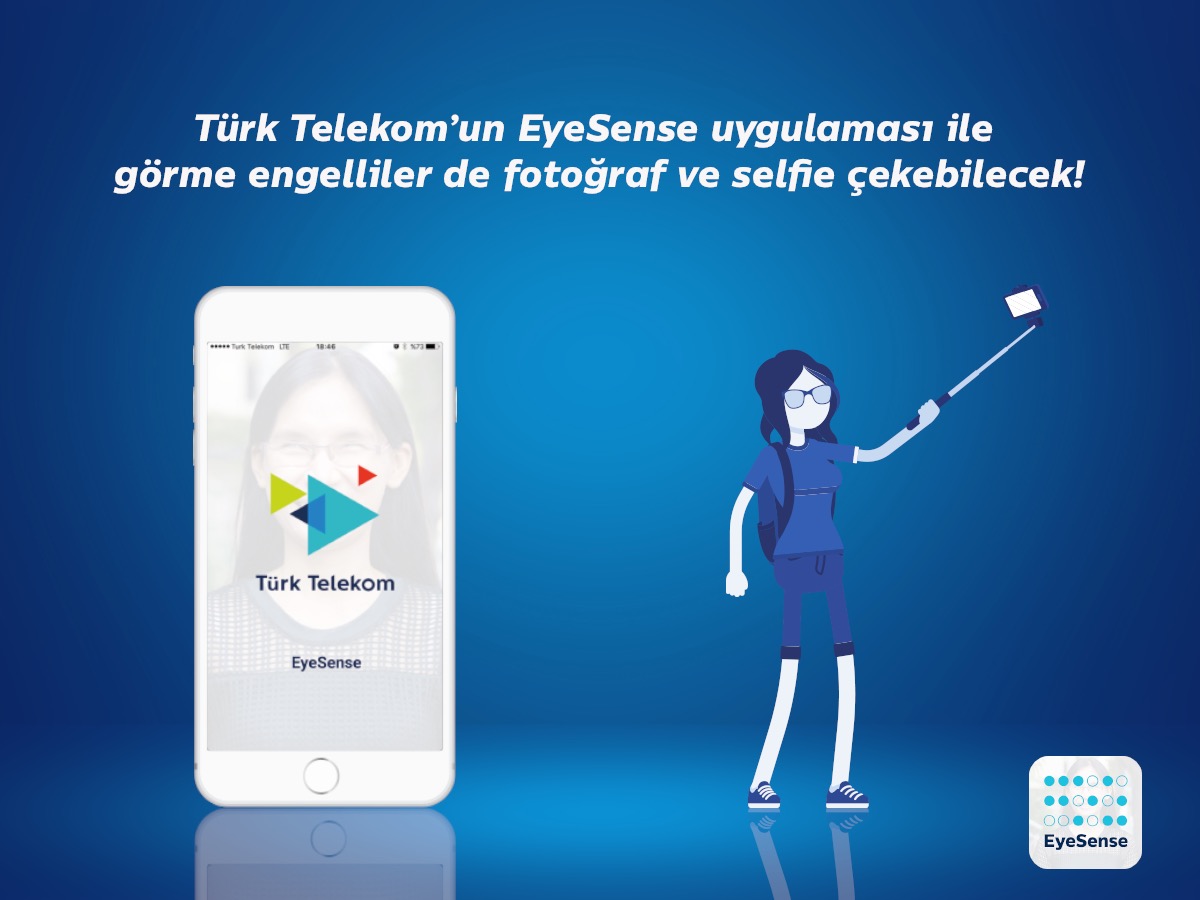 Türk Telekom’un yeni mobil uygulaması eyesense ile görme engelliler Türkiye’de ilk defa sesli uyarı sistemi ile ile hem selfie hem de telefonun ön ve arka kamerasını kullanarak fotoğraf çekebilecekler.EyeSense kullanıcıları için olması gereken sahne hizalamasının yaparak, kullanıcıların selfie veya fotoğraf çekimi yapmasına yardımcı oluyor. Günlük hayatta hem kendi selfie’lerini çekmelerini hem de telefonun ön ve arka kamerasını kullanarak fotoğraf çekimi yapmalarına olanak sağlıyor. Türkiye ‘de bir ilk olma özelliğini taşıyan Türk Telekom’un yeni mobil uygulaması ile fotoğrafı çekilen kişileri tag’leyerek görme engellilerin ekranda kimin fotoğrafını çektiğini görmesi hedefleniyor.Uygulama, görme engelli olmayan bireyler için de arka kamera kullanımında sesli yönlendirme yaparken, ön kameraya göre daha yüksek çözünürlüklü olan kamera üzerinden özçekim yapılmasına da imkan tanıyor.