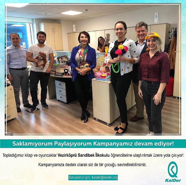 KALDER (Türkiye Kalite Derneği)’nin konuyla ilgili sosyal medya üzerinden bilgilendirmesi şöyle: Saklamıyorum Paylaşıyorum Kampanyamız devam ediyor.Topladığımız kitap ve oyuncaklar Vezirköprü Sarıdibek İlkokulu öğrencilerine ulaştırılmak üzere yola çıkıyor!Kampanyamıza destek olarak siz de bir çocuğu sevindirebilirsiniz. Sorularınız için: [email protected] Ayrıntılar için haberin sonundaki foto üstüne tıklayınız.(TP)