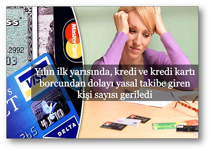Yılın ilk yarısında, bireysel kredi kartı borcundan dolayı yasal takibe intikal etmiş kişi sayısı bir önceki yılın aynı dönemine göre yüzde 16 oranında azalarak 417 bin kişi oldu. Bireysel kredi borcundan dolayı yasal takibe intikal etmiş kişi sayısı ise aynı dönemde yüzde 15 oranında artarak 432 bin kişi oldu.Negatif Nitelikli Bireysel kredi ve Kredi Kartı* (Ocak - Haziran, bin kişi)