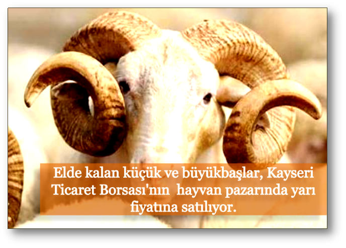 Serap Safiye Yıldız- KayseriKayseri'de bu yıl kurban Bayramı'nda 2018 yılında 20 binin üzerinde büyükbaş ve küçükbaş satıldı. Canlı hayvan üreticilerinin bazıları ellerinde kalan kurbanlıkları satmak için Ticaret Borsası'nın Kocasinan ilçesindeki Karpuzatan tesislerine getirdi. Canlı hayvanların, kurbanlık fiyatlarının neredeyse yarısına satıldığı görüldü.