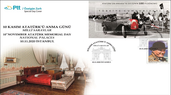 10 Kasım 2020 tedavüle "10 Kasım Atatürk'ü Anma Günü Milli Saraylar" ve "10 Kasım Atatürk'ü Anma Haftası" konulu özelgün zarfları 5,00 TL bedelle PTT iş yerlerinde, PTT'ye ait www.filateli.gov.tr web adresinde ve filateli cep uygulamasında satışa sunuldu."10 Kasım Atatürk'ü Anma Haftası" konulu özelgün zarfıyla birlikte aynı tarihte "PTT Pul Müzesi, Hacı Bayram Mahallesi, Atatürk Bulvarı, No: 13, Ulus / Altındağ / ANKARA" adresinde mesai saatleri "10 Kasım Atatürk'ü Anma Haftası 10.11 .2020 ANKARA "ibareli özeltarih damgası kullandırılmaya başlandı.Koronavirüs salgınından dolayı toplum sağlığını korumaya destek olmak, PTT iş yerlerinde yoğunluk yaşanmasını önleme ve kullanma dosyatelik işlemlerini PTT iş yerlerine gelmeden yapabilmeleri için; 10 Kasım 2020 tarihinde satışa sunulacak olan özelgün zarfını posta damgası ile talep eden müşterilere, www.filateli.gov.tr adresinden ürünün tedavül tarihi itibari ile 6 aydan yaş doldurup gönderilecek posta damgalı olarak gönderilebilecek.Müşterilerin, tarif filatelik ürünler için (Filateli İşletme Prosedürüne uygun olması halinde) özeltarih damgası ve posta damgası talepleri, 10 Kasım 2020 tarihi itibari ile 3 ay harf PTT AŞ'ye iletildiği takdirde karşılanacak.