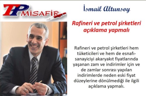 İsmail ALTUNSOY - MİSAFİR KALEMSon dönemde doların 7,30 liralara çıkması ve de ham petrol varil fiyatın da 80 dolar üzeri rakamlarını aşması, ister istemez iç pazarda benzin, motorin ve otogaz başta olmak üzere akaryakıt ürünlerine yoğun bir zam baskısı yaptı. O kadar ki sonunda Maliye ve Enerji Yönetimleri, Özel Tüketim Vergisi (ÖTV)'de indirime giderek zamları tam olarak tüketicilere yansıtmadı. Ki, bu doğru bir adımdı. Gelişmiş ülkelerde, akaryakıt fiyatlarının anormal arttığı dönemlerde vergilerde indirim yapılarak vatandaşların yüksek zamlardan korunması hedeflenir.AÇIKLAMA GEREKİRFakat ve genelde olan bir durumdur, zam öncesi akaryakıt fiyatları yüksek zam dönemleri geçtikten sonra genelde eski rakamlara geri dönmezler. Bir diğer ifadeyle, indirim olsa da ilk indirim rakamlarına düşüş olmaz, akaryakıt fiyatlarında. Geçmişte bunun tartışması da oldu: 'Rafineri-petrol şirketleri zamlarda hızlı indirimlerde yavaş davranıyor' diye. Bunun değişik açıklaması da olmuştur-yapılmıştır.ŞİMDİ AYNI DÖNEMDEYİZYine ham petrol ve dolar kuru kaynaklı akaryakıtta pahalı bir dönem yaşandı. Ancak ve yine ham petrol ve dolar kuru rakamlarında çok ciddi düşüşler yaşanıyor. Ve indirimler başladı. Ama, tüketiciler memnun değil. Bir diğer memnun olmayan kesim ise esnaflar. Çünkü, akaryakıt-enerji maliyetleri yaşamın bütün alanına olumsuz etkiler yapıyor. Mesela TESK konuyla ilgili yeni bir açıklama yaptı. Yani, Türkiye Esnaf ve Sanatkarları Konfederasyonu. Yani, bakkaldan terziye kadar toplumun geniş esnaf kesimini temsil eden kuruluş. TESK diyor ki bugünkü açıklamasında, motorine yapılan indirimler az (Son dönemde sık sık benzer açıklamalar yapıyor). Birde uyarı yapıyor, TESK: enflasyon bu şekilde düşmez. Dikkate almak lazımdır. Petrol ve Rafineri şirketleri; 'hem tüketicileri ve hem de esnafı-sanayiciyi akaryakıt fiyatlarında yaşanan zam ve indirimler için ve de neden zamlar sonrası indirimlerde eski fiyat düzeylerine dönülmüyor vb' konularında bilgilendirici bir açıklama-bilgilendirme yapmaları faydalı olacaktır. Bu açıklamalar; hem bilgilendirici olacaktır, hemde sektöre yönelik olumsuz bakışları da azaltacaktır.