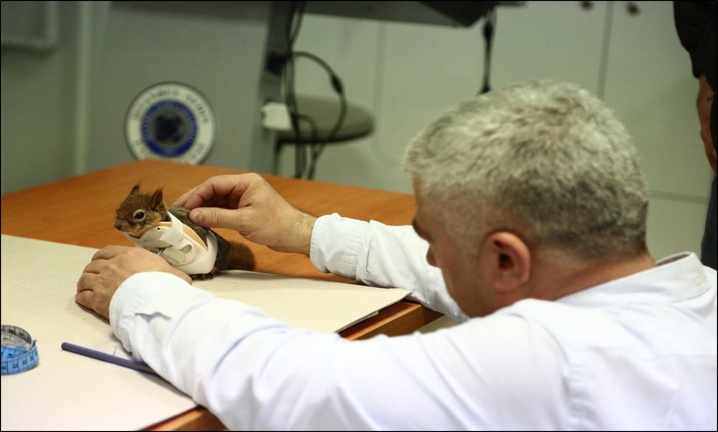 Batman’da yabani hayvanlar tarafından ağır yaralanan sincap Karamel’in protezleri İstanbul Aydın Üniversitesi, Ortopedik Protez ve Ortez programı laboratuvarı tarafından yapılıyor.