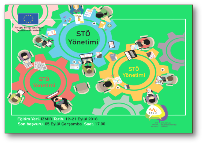“STÖ Yönetimi” eğitimi 19-21 Eylül 2018 tarihlerinde, Çarşamba- Cuma günleri arasında İzmir’de gerçekleştirilecek. İzmir ve çevre illerinden tüzel kişiliğe sahip STÖ’lerin katılım gösterebileceği eğitimlere her STÖ’den en fazla iki kişi kabul edilecek.
