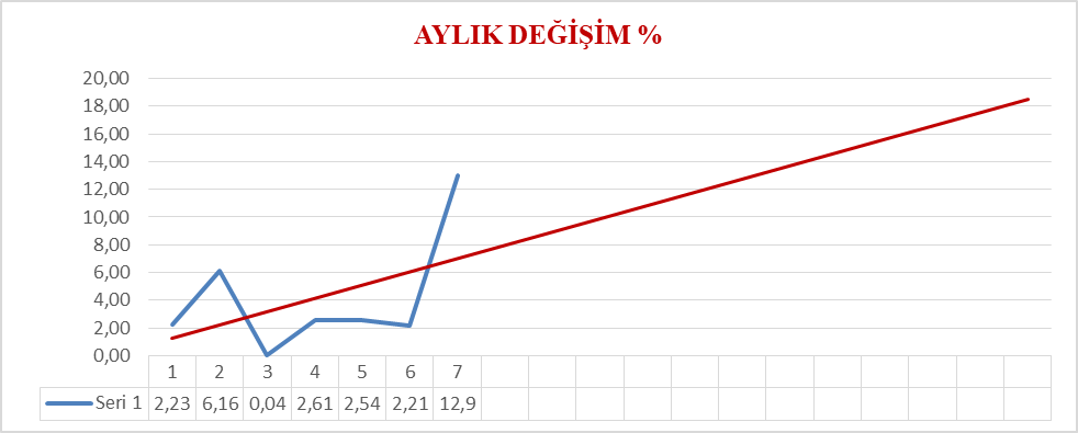 2023 yılının ilk yedi ayında gerçekleşen birikimli fiyat artışı yüzde 31,59 olduFiyatların artış hızının artarak devam etmesi durumunda, yılsonunda Market Endeksinin üç haneli rakama ulaşması sürpriz olmayacaktır.