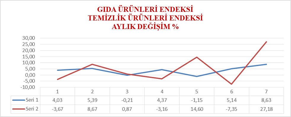 Gıda ürünlerindeki artış oranı yüzde 8,63 olurken, temizlik ve hijyen ürünlerindeki aylık artış yüzde 27,18 oldu