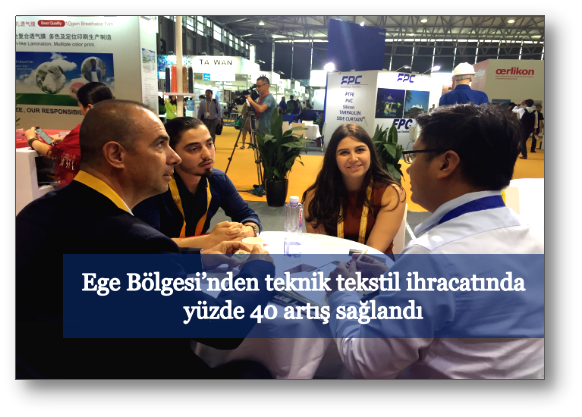 Ege Tekstil ve Hammaddeleri İhracatçıları Birliği’nin “Çin Tekstil Sektörel Ticaret Heyeti”ne katılan firmalar şunlar oldu; Menderes Tekstil Sanayi Ve Ticaret A.Ş., Sun Tekstil San. Ve Tic.A.Ş., Uçak Teks. Tur. Ith. Ihr. San. Ve Tic.A. Ş., Fateks Kumaş Tekstil Ve Konf. San. Tic.A.Ş., Yeniçeri Tekstil Sanayi Ve Ticaret Anonim Şirketi, Punteks Tekstil Makine Sanayi Ve Ticaret Anonim Şirketi, Spot Tekstil San. Ve Tic. A.Ş., Mayteks Örme San. Ve Tic.A. Ş., Batı Basma San.A.Ş.,Yiğit Mefruşat Iplik Desen Ve Nakiş San. Tic. Ltd. Şti. ve Ilka Baski Kumaş Teks.San.Ve Tic.Ltd.Şti”Teknik tekstile yapılan yatırımlar meyvelerini vermeye başladıEge Bölgesi’nde teknik tekstilin ihracatının payını arttırmak için 5 yıl önce Teknik Tekstiller Araştırma ve Uygulama Merkezi (TEKSMER)’ni kuran Ege Tekstil ve Hammaddeleri İhracatçıları Birliği, teknik tekstile yaptığı yatırımların meyvelerini almaya başladı.2018 yılının Ocak – Temmuz döneminde Türkiye’nin teknik tekstil ürünleri ihracatı yüzde 19’luk artışla 899 milyon dolardan, 1 milyar 71 milyon dolara çıkarken, Ege Bölgesi’nden yapılan teknik tekstil ihracatı yüzde 40’lık artışla 45 milyon dolardan, 64 milyon dolara yükseldi.