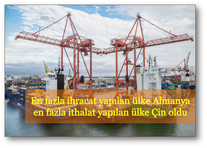 Çin'den yapılan ithalat, 2018 yılı Temmuz ayında 1 milyar 975 milyon dolar oldu. Bu ülkeyi sırasıyla 1 milyar 886 milyon dolar ile Rusya, 1 milyar 691 milyon dolar ile Almanya ve 1 milyar 122 milyon dolar ile ABD izledi.