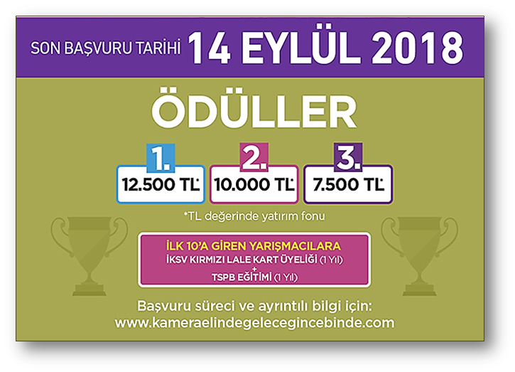 Bireylerin bilinçli finansal kararlar almalarına yol göstermeyi hedefleyen ve bu sene beşincisi düzenlenecek olan kısa film yarışmasında dereceye girenleri 12 bin 500 TL’ye varan ödüller bekliyor. Ayrıca, ilk 10’a giren yarışmacılar, TSPB tarafından düzenlenen bir günlük eğitimlerden birine ücretsiz katılma imkanı ve 1 yıl süreli İKSV Kırmızı Lale Kart Üyeliği kazanacak.