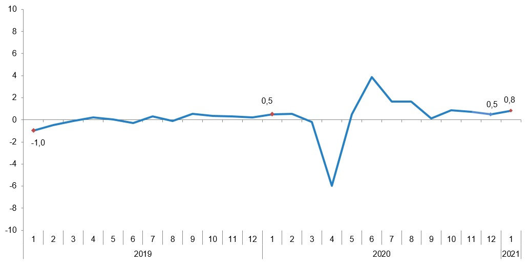 Ücretli çalışanların aylık değişim oranları (%), Ocak 2021