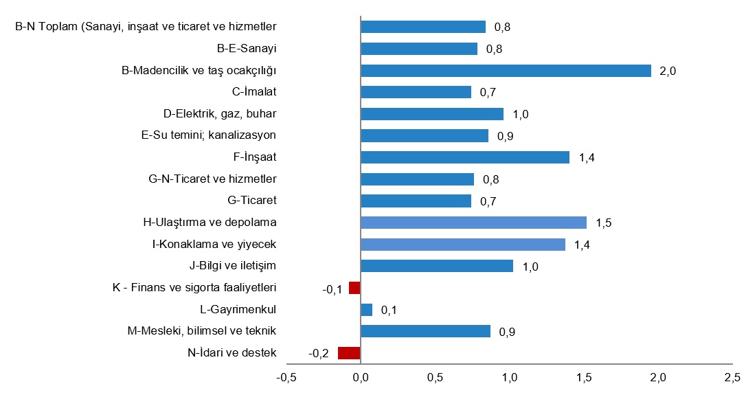 Sanayi, inşaat ve ticaret-hizmet sektörleri toplamında mevsim ve takvim etkilerinden arındırılmış ücretli çalışan sayısı 2021 Ocak ayında bir önceki aya göre %0,8 arttı.Ücretli çalışanların alt detaylarına bakıldığında; 2021 yılı Ocak ayında ücretli çalışan sayısı aylık olarak sanayi sektöründe %0,8, inşaat sektöründe %1,4 ve ticaret-hizmet sektöründe %0,8 arttı.
