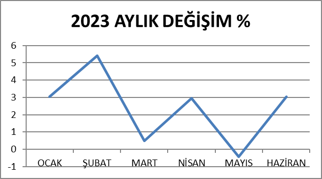 Market Endeksinde aylık değişim yüzde 3,03 olduHaziran 2023 döneminde 350 ürüne ilişkin fiyat ortalamalarındaki değişim yüzde 3,03 olarak gerçekleşti.Mayıs 2023 döneminde değişimin yüzde -0,42 olduğu dikkate alındığında, market endeksinde sert yönlü hareket kaydedilmiştir.Yukarı yönlü eğilimin nedeninin; seçim sürecinde baskılanan fiyatlar ve seçim sonrası kur, enerji ve asgari ücretteki artış olduğu gözlemlenmektedir.