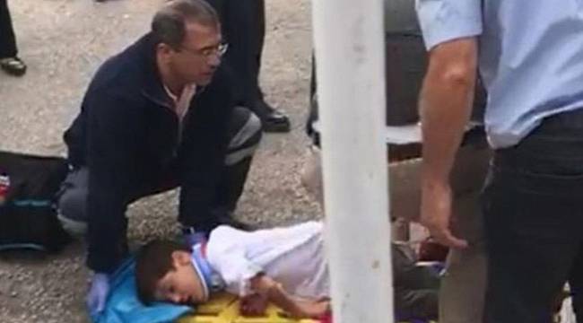 Kocaeli Derince'de, 1'inci sınıf öğrencisi çocuk, okulun demir bahçe kapısının üzerine devrilmesi sonucu yaralandı.