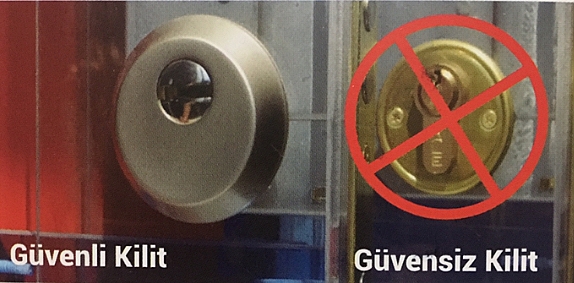 Hırsızlığa karşı tedbir şart. Özellikle kapı kilitlerinin açıklarını iyi bilen hırsızlar, kapıdan girmeyi tercih ediyor. Ancak Emniyet (İstanbul), bu konuda ev ve iş yeri sahiplerine önemli bir güvenlik hatırlatması yaptı.ÇELİK rozet TAKILMALIİşte o önemli ve hırsızlığı önleyen hatırlatma: Kapı kilit göbeklerine çelik rozet takviyesi yapılması hırsızlığın önlenmesi açısından çok önemlidirAyrıntılar için haber sonundaki foto üstüne tıklayınız. (ee)