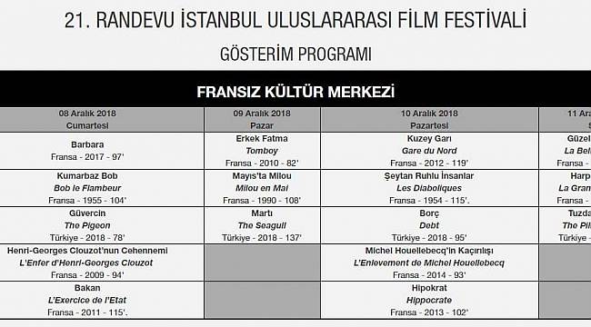 ARALIK: 8-11 Aralık tarihleri arasında gerçekleşecek olan festival bu yıl, Çağdaş Fransız Sineması, Fransız Sinemasının Büyük Ustaları ve İlk Randevu bölümleriyle İstanbullu sinemaseverlerin karşısına çıkacak.HABERİN AYRINTILARI....Geçtiğimiz yıllarda İspanyol ve Çin sinemasına odaklanan Randevu İstanbul’un merkezinde bu yıl Fransız Sineması var. Fransız Kültür Merkezi işbirliğiyle gerçekleştirilen ve çağdaş Fransız sinemasının henüz Türkiye’de gösterime girmemiş iyi örnekleri ile Fransız sinemasının büyük ustaları tarafından çekilmiş klasikleri bir araya getiren Odak Ülke: Fransa bölümü seçkisi Fransız Kültür Merkezi sinema salonunda seyirciyle buluşacak.Festivalin bir diğer bölümü ise geçtiğimiz yıl ilk kez İstanbullu sinemaseverlerle beyazperdede buluşan “İlk Randevu”. Yerli sinemadaki yeni yönetmenlere dikkat çekmeyi hedefleyen “İlk Randevu” geçtiğimiz yıl ilk filmleriyle dikkat çekici bir başarı gösteren yeni sinemacıları bir kez daha seyircinin dikkatine sunacak.Odak Ülke: FransaHer yıl farklı bir ülkenin sinemasını mercek altına alan Randevu İstanbul Uluslararası Film Festivali 21. yılında “Fransız Sineması”na odaklanıyor.Fransız Kültür Merkezi iş birliğiyle gerçekleştirilen bu bölüm kapsamında festival, son yılların dikkate değer Fransız filmlerinden Türkiye’de gösterime girmemiş olan 8 filmi seyirciyle buluşturacak.Çağdaş Fransız Sineması adlı bu bölümde yer alan filmler şöyle: Fransa’nın en üretken aktörlerinden Mathieu Amalric’in ikinci uzun metraj yönetmenlik çalışması “Barbara”melankolik şarkılarıyla Fransızlar’ın gönlünde yer edinmiş bir şarkıcı olan Barbara hakkında film içinde bir film.Çağdaş Fransız Sineması’nın en önemli yönetmenlerinden Claire Simon’un belgesel ile kurmaca arasındaki sınırda gezinen filmi “Gare du Nord” modern Fransa’nın sürekli değişen sosyal ve etnik yüzünü başarıyla yansıtıyor.Aynı zamanda doktor olan yönetmen Thomas Lilti’nin, açılışını Cannes Film Festivali’nde yapan ve övgülerle karşılanan ikinci uzun metrajlı filmi “Hipokrat”ta Paris’teki bir devlet hastanesine çaylak bir doktorun gözünden bakıyoruz.Fransa’nın ve belki de dünyanın en fazla tartışma yaratan yazar kişiliklerinden Michel Houellebecq’in üç acemi suçlu tarafından kaçırılışını hikaye eden sıra dışı bir komedi olan “Michel Houellebecq’in Kaçırılışı”nda ünlü yazar kendisini oynuyor. Film dünya galasını Berlin Film Festivali’nde yapmış ve aynı yıl birçok festivalde övgüyle karşılanmıştı.BELİRLİ BİR BAKIŞÇağdaş Fransız Sineması’ndaki çeşitliliği yansıtan seçkide ayrıca; ilk gösteriminin yapıldığı Cannes Film Festivali’nin Belirli Bir Bakış bölümünde FIPRESCİ Ödülünü kazanan ve Cesar Ödülleri’nde senaryo, oyunculuk ve müzik dallarında ödüle layık görülen politik gerilim filmi “Bakan”; başrol oyuncuları Cécile de France ve Izïa Higelin’in içten performansları ve 1970’lerin Fransası’na dair farklı bir perspektif sunan dönem atmosferini büyük bir doğallıkla canlandırmayı başaran yönetmenliğinin de etkisi ile uzun süre hafızalardan silinmeyecek bir film olan “Yaz Vakti”; cinsel kimliğiyle ilgili duygusal ve zihinsel bir karmaşa yaşamakta olan 10 yaşındaki Zoe’nin hikayesini son derece derece zarif, sevgi dolu bir yaklaşımla anlatan çarpıcı bir filmolan “Erkek Fatma” veünlü yönetmen Henri-Georges Clouzot’nun hiç tamamlayamadığı filmi Cehennem’in gizemli yapım ve çekim öyküsünü perdeye getiren “Henri-Georges Clouzot'nun Cehennemi” yer alıyor. Clouzot’nun zamanın büyük yıldızı Romi Schneider ile çalıştığı bu son derece iddialı film projesi için çektiği nefes kesici görüntüler ilk defa bu filmde seyirci karşısına çıkıyor.Fransız Sinemasının Büyük UstalarıT.C. Kültür ve Turizm Bakanlığı’nın ve Fransız Kültür Merkezi’nin desteği ile gerçekleştirilen 21. Randevu İstanbul’da Fransız Sinemasının büyük ustaları tarafından çekilmiş 5 klasik film beyazperdede seyirciyle buluşacak. Tüm zamanların en iyi filmlerinden biri kabul edilen Jean Renoir’in 1937 yapımı filmi “Harp Esirleri”, Jean-Pierre Melville’in Fransız Yeni Dalgası’na giden yolu açan 1956 yapımı filmi “Kumarbaz Bob”, Fransa’nın Hitchcock’u olarak bilinen Henri-Georges Clouzot’nun “Şeytan Ruhlu İnsanlar”ı, Louis Malle’in “Mayıs'ta Milou”suve Fransa’nın öncü sinemacısı Jean-Luc Godard’ın “Çılgın Pierrot” su bu seçkide yer alan filmler.İLK RANDEVUGeçtiğimiz yıl ilk filmleriyle dikkat çekici bir başarı gösteren yeni sinemacıları bir kez daha seyircinin dikkatine sunmayı amaçlayan bu bölümde Vuslat Saraçoğlu’nun “Borç”, Banu Sıvacı’nın “Güvercin”, Erkan Tunç’un “Martı”ile Burak Çevik’in “Tuzdan Kaide”filmleri gösterilecek.TÜRSAK Kültüre ve Sanata Yüksek Katkı ÖdülüTÜRSAK Vakfı’nın kültüre ve sanata katkılarıyla fark yaratan isimleri onurlandırmak amacıyla 3 yıl önce hayata geçirdiği TÜRSAK Kültüre ve Sanata Yüksek Katkı Ödülü’nün bu yılki sahibi ülkemizin kültür ve sanat yaşamına sunduğu değerli katkılardan dolayı“Kariyo& Ababay Vakfı”olacak.Festival Afişinde Rengarenk “Fransız” MakaronlarıRandevu İstanbul'un bu yılki afişinde Fransız mutfağının klasiklerinden olan makaronlar göze çarpıyor. Fransa’nın baştan çıkarıcı simgelerinden olan makaronlar seyirciyi sinema lezzetinin dorukta yaşanacağı lezzetli bir film seçkisi ile sinema aşkını tazelemeye davet ediyor. Çağdaş sinemanın iyi örneklerini keşfetme ve sinemaya yön veren klasikleri bir kez daha beyazperdede görme fırsatı sunan bu
