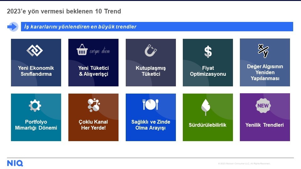 - “Fiyat Optimizasyonu”, “Değer Algısının Yeniden Yapılanması”, “Sağlıklı Beslenme - Fiyat İkilemi” ve “Portföy Mimarlığı Dönemi” trendlerinin ayrıntılarını ise NielsenIQ Türkiye Genel Müdürü ve Afrika & Orta Doğu Analitik Başkan Yardımcısı Didem Şekerel Erdoğan şu şekilde paylaştı: