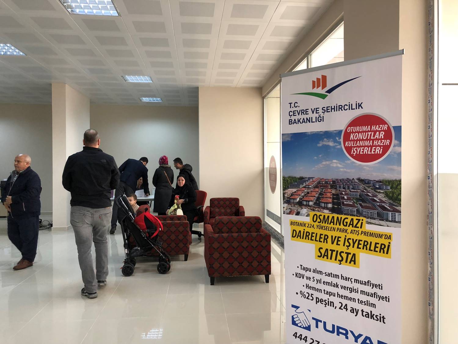 Mülkiyeti Çevre ve Şehircilik Bakanlığı’na ait taşınmazların pazarlamasını gerçekleştiren TURYAP, Bursa Osmangazi Soğanlı Kentsel dönüşüm alanındaki 350 konut ile 38 cadde üstü işyerleri için kurduğu satış ofisine 5 günde 200’ün üzerinde talep geldi; 60 sözleşme imzalandı. Pazarlama kapsamında ise 4.000’e yakın alıcı adayı çağrı merkezi kanalı ile bilgilendirildi.