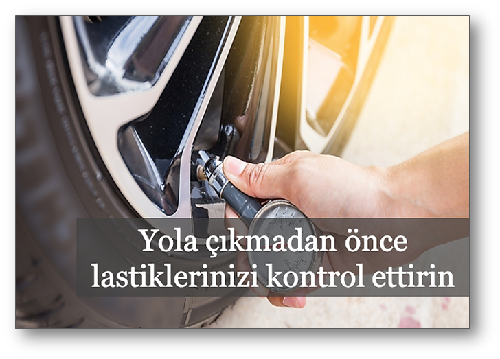 - Yola çıkmadan önce yedek lastikleriniz de dahil olmak üzere, tüm lastiklerinizi kontrol edin.