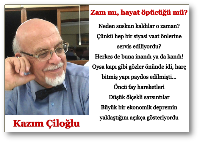 Ücretler ne zamandır, yoksulluk hatta açlık sınırının altında değil miydi?Küçük ve orta ölçekli esnaf hatta taraf olmayıp, bertaraf olan büyük kuruluşlar bile bıçak sırtında bir karla, borcu borca ekleyerek işlerini ayakta tutmaya çalışmıyorlar mıydı?Neden suskun kaldılar o zaman?Çünkü hep bir siyasi vaat önlerine servis ediliyordu?Herkes de buna inandı ya da kandı!Oysa kapı gibi gözler önünde idi, harç bitmiş yapı paydos edilmişti…Öncü fay hareketleriDüşük ölçekli sarsıntılarBüyük bir ekonomik depremin yaklaştığını açıkça gösteriyorduBu da kulak arkası edildiSonuçta oylar sandığa konur konmaz beklenen olduBüyük bir eko- deprem!Hala inanmadık ve umursamadıkSonuçta dev bir ‘’devalüasyon tsunami dalgası’’ herkesi altına alıp sürükleyip götürdü!Bundan zarar görmeyenler ise deniz kenarındakiler değil, tepe, yayla ve rezidans gibi yüksek yerlerde yaşayanlar oldu. Oysa bu gidişatın asıl sorumlusu sahildekiler mi yoksa yükseklerdekiler miydi?İşte bilimsel olarak bu iyi araştırılmalı ve mutlaka sonuçları ortaya konmalıdır!Ekmek zammı, şarbon gibi anlık gündem maddeleri yerine, neden bu duruma geldiğimizi sorgulamaz ve bunun bizzat bizim yanlış seçimlerimizden dolayı kaynaklandığının idraki içinde olmazsak? Önümüzde ki Mart ayında, bir başka eko-tsunami dalgasında, olanı da kaybetmemiz elde değil…Aslında zamlar değil, ücretler düşük!Suçlu ise alım gücü olarak eskisinden de geride iken, ücretlilere hayat öpücüğü vermeyip, seni ekonomik saldırı ile avutanlar ve baş başa bırakanlardır…